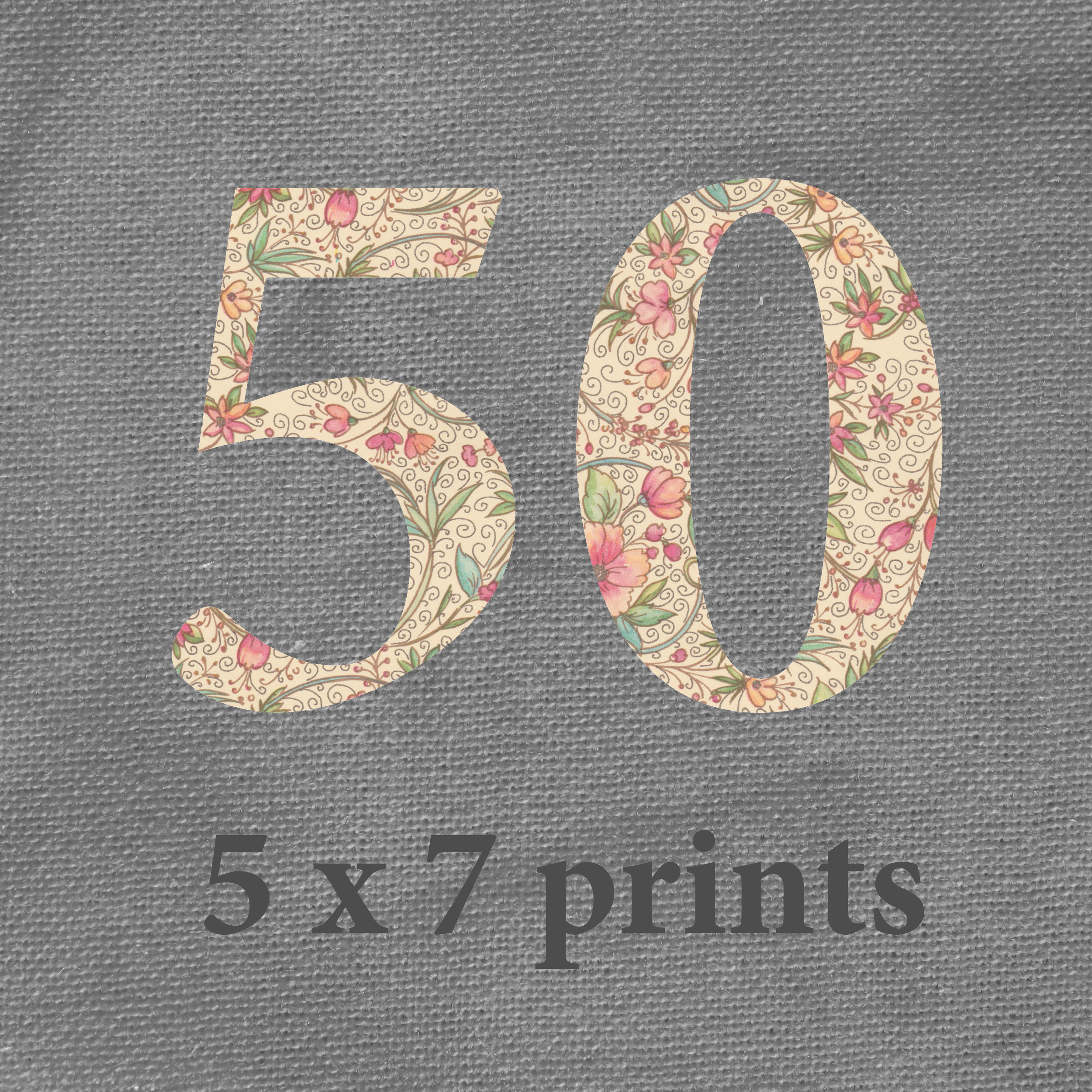 50 printed 5 x 7 of the card of your choice on heavy matte paper and white envelopes.
